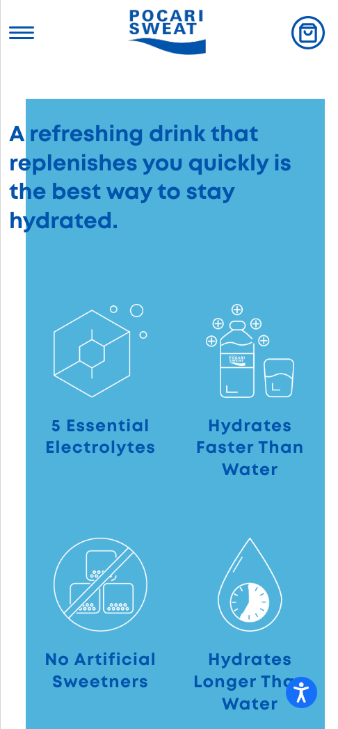 We created story-led product pages with completely refreshed copywriting to improve the brand’s tone of voice and highlight product benefits in a clear concise way. Being a company backed by scientific research, it was important that Pocari Sweat could use their background as a unique selling point of their product.